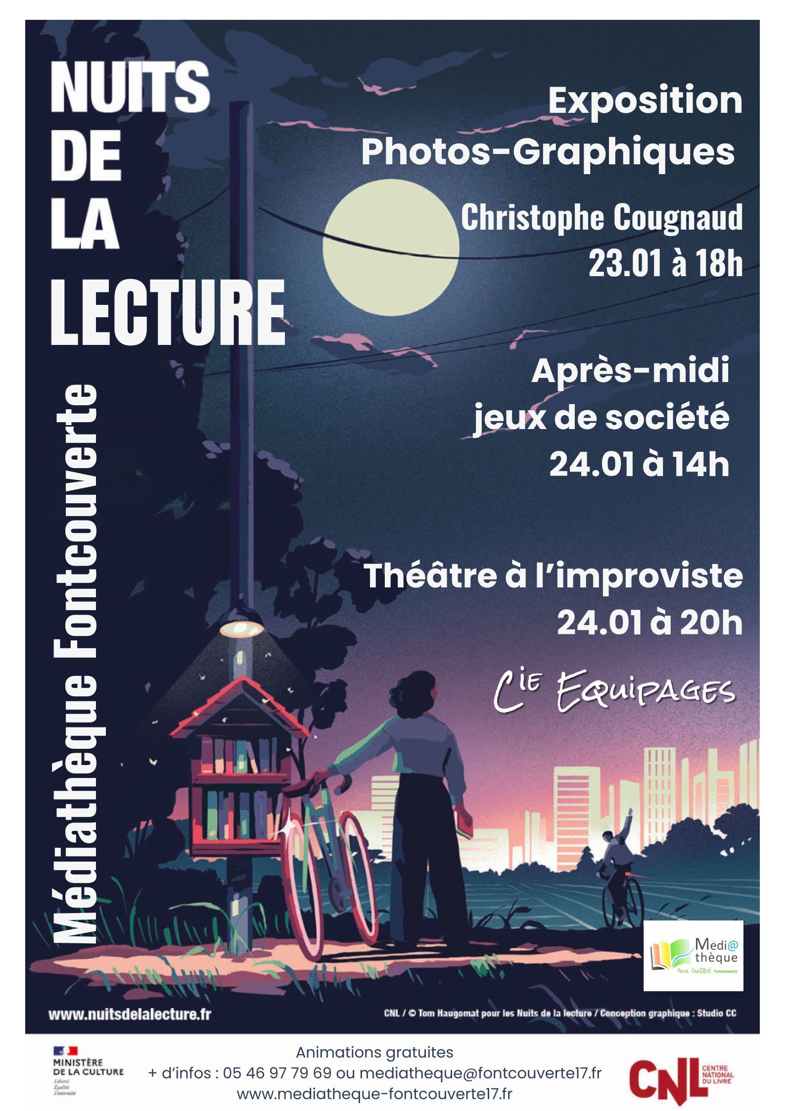 A l'occasion des Nuits de la lecture, votre médiathèque sera exceptionnellement ouverte samedi 24 janvier de 14h à 17h, profitez-en !
